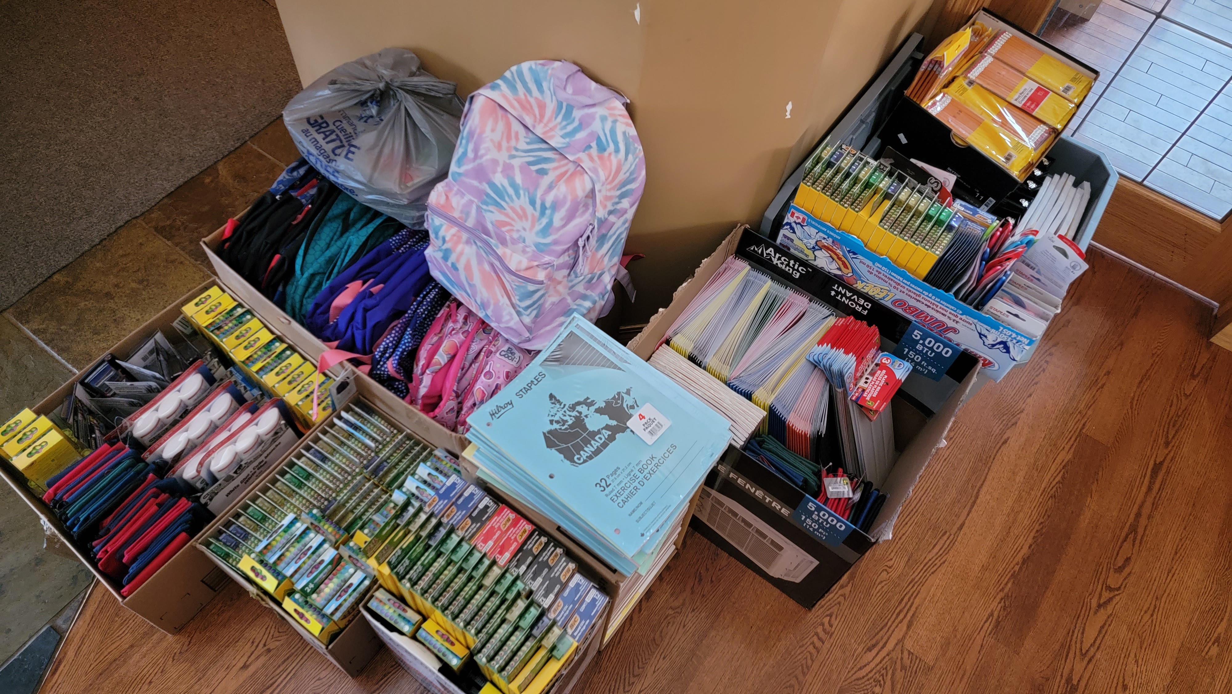 Just to give you an idea of what we collected, we had over 30 backpacks, close to 1000 pens, almost 600 pencils, 60 packs each of crayons and pencil crayons, erasers, pencil sharpeners, rulers, workbooks, binders, highlighters, glue sticks and so much more.